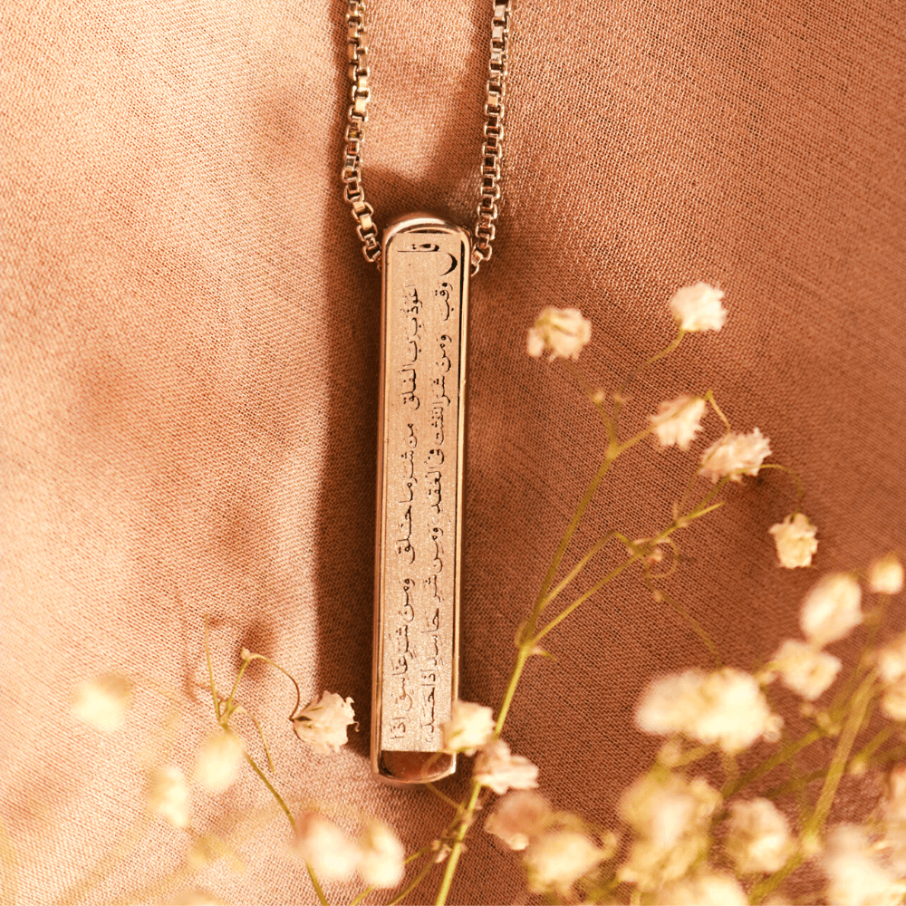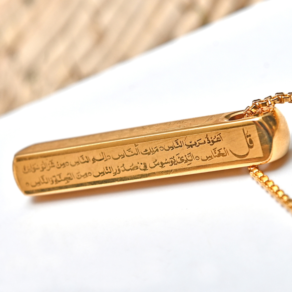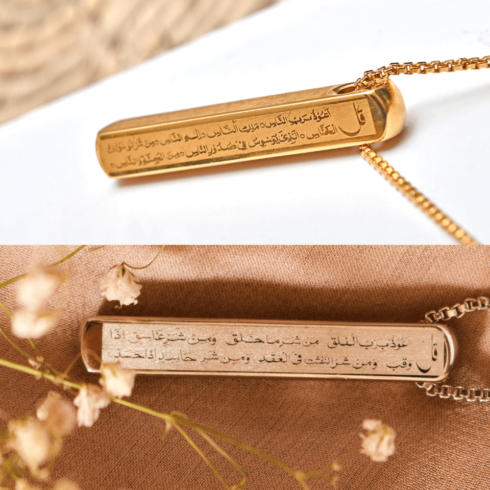 These four Surahs are usually called the Shielding Chapters in the entire Quran, serving as protection from the whispers of Satan, evil eye (nazr), jealousy, envy, and all other evils of this world we face on the daily. Safeguard yourself every day with this exquisite necklace.