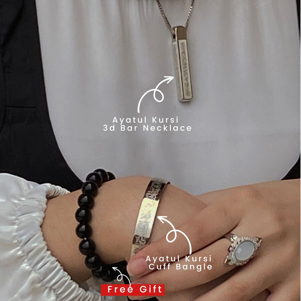 BUNDLE OFFER AYAT UL KURSI 3D BAR + CUFF BANGLE (FREE BEADS BRACELET)