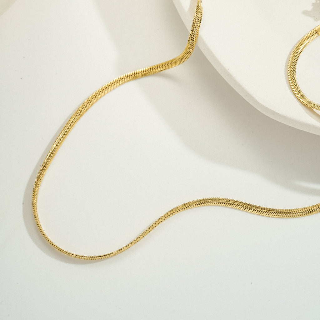 This eye-catching snake Chain Necklace is a versatile accessory perfect for any look. It can be worn on its own for a classic look or can be layered with any of your favorite gold necklaces for a more fashionable look.