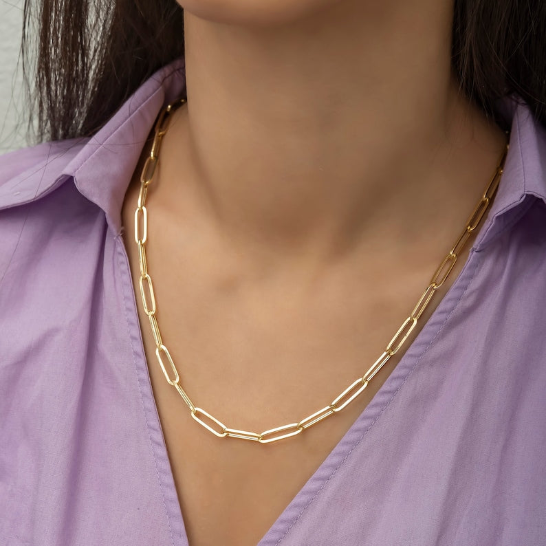 With its understated yet stylish aesthetic, the Paperclip Chain Necklace effortlessly transitions from day to night, making it a versatile staple in any woman's jewelry collection.