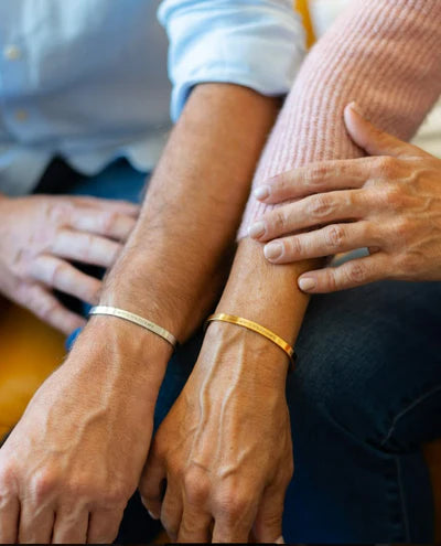 Our custom name bangle is fully adjustable with high quality material and we use stainless steel to make the bracelet skin friendly. You can customize any name coordinates or special message on the outside and inside of the product.