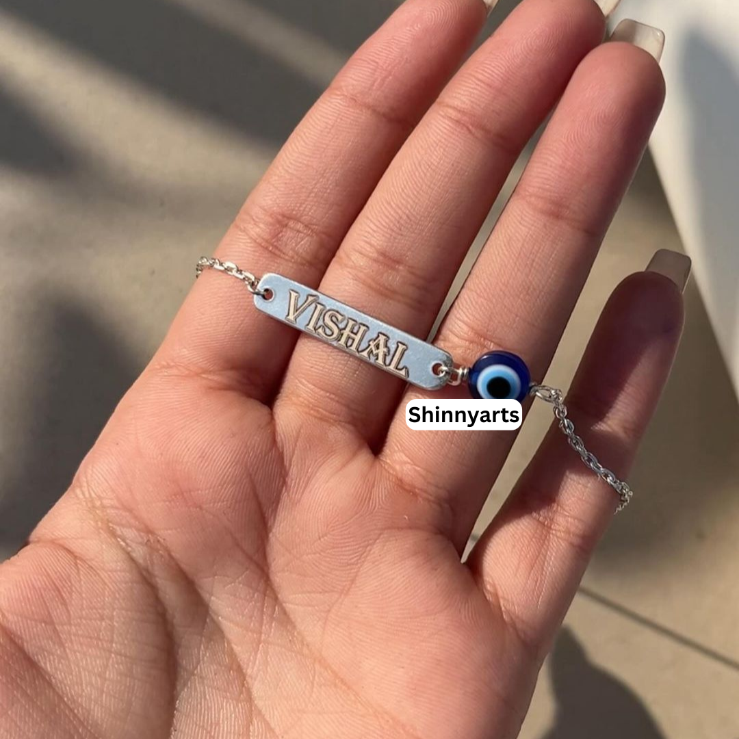 Ward off Negativity with our Evil Eye Name Bracelet crafted from premium silver. Personalize it with any name engraved for a touch of individuality.