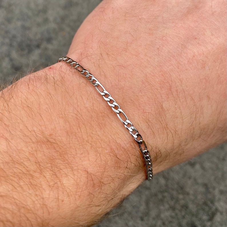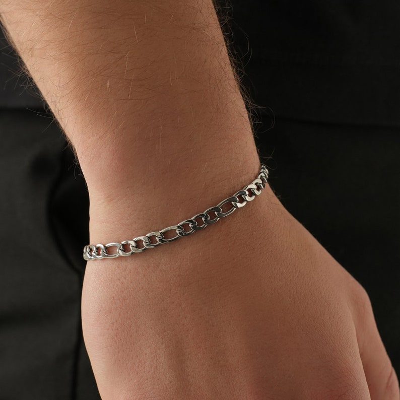 A men's chain bracelet typically features interlocking metal links forming a chain-like design. They come in various styles and materials, such as stainless steel, silver & Gold.