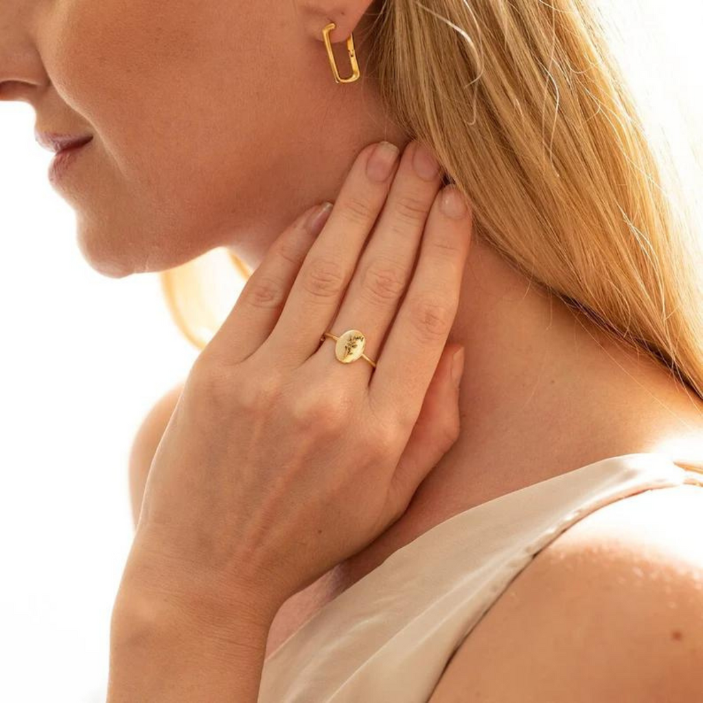 Celebrate your birth month in style with the elegant Birthflower Engrave Ring, a timeless piece that combines personal meaning with stunning design. Crafted in 18k gold plating, this ring features a beautifully engraved birth flower, making it a unique accessory that tells your story. Perfect for everyday wear, it adds a touch of elegance and sentiment to any look, whether you’re dressing up for an occasion or keeping it casual.
