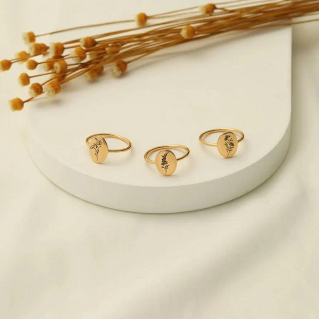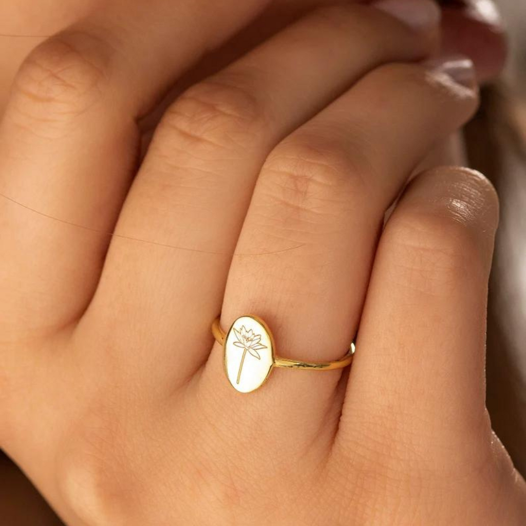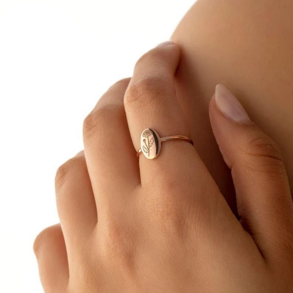 Embrace your personal style and make a lasting statement. Order your Birthflower Engrave Ring today!