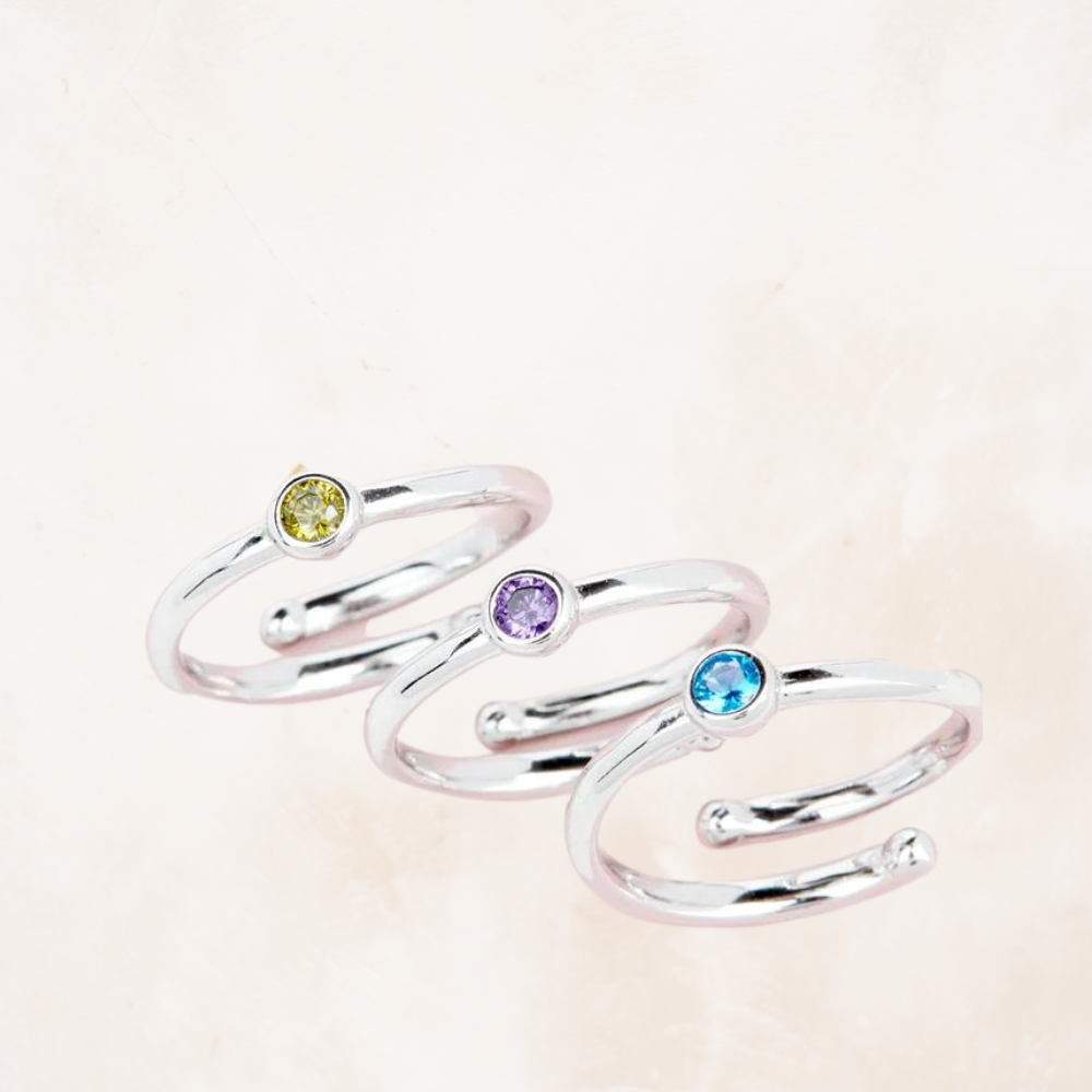 Featuring a stunning mini birthstone, mix & match the months that are meaningful to you, to create the perfect ring stack. Featuring a size adjustable band and stunning mini birthstone, mix & match the months that are meaningful to you, to create the perfect ring stack.
