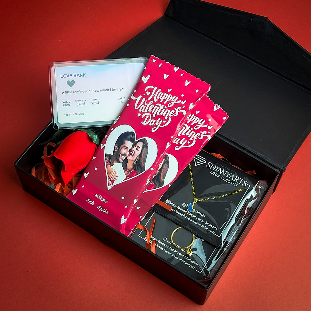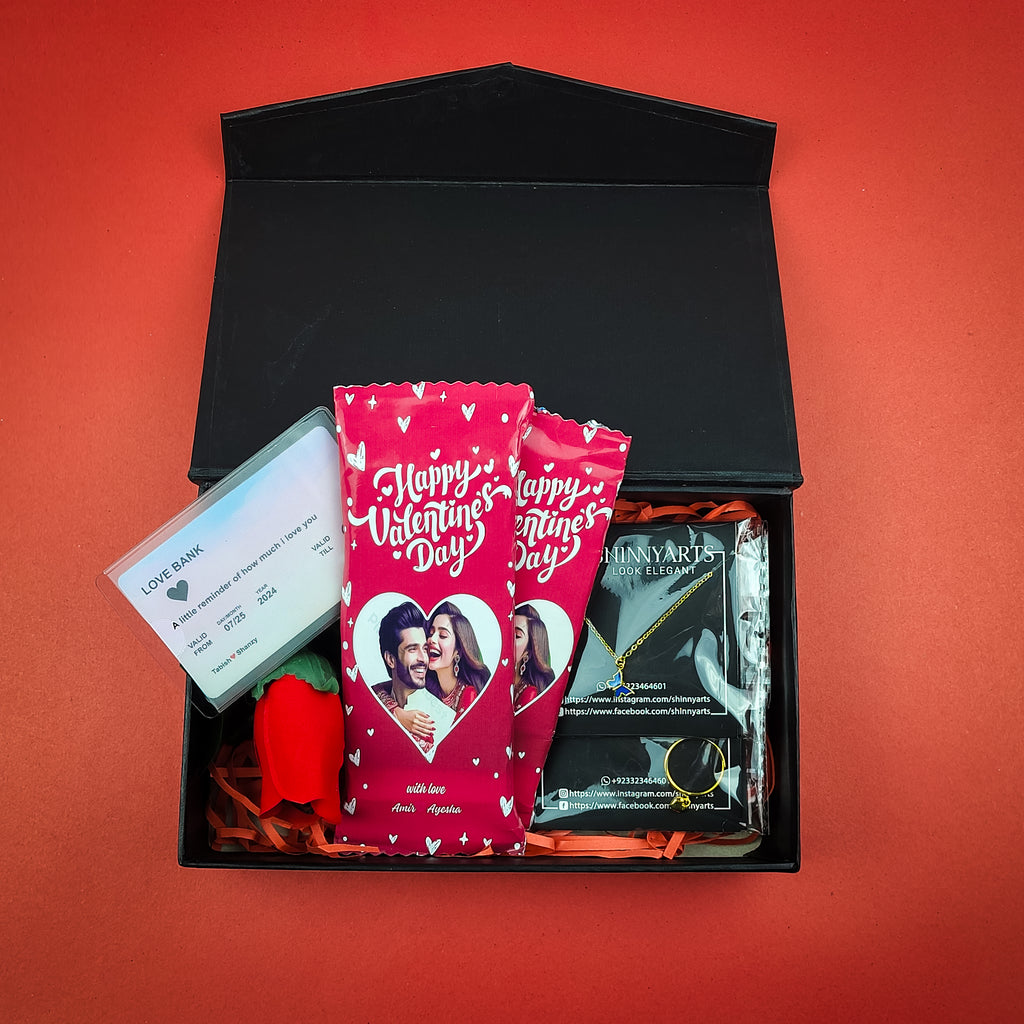 Show your partner just how much they mean to you with the ultimate expression of love: our Valentine Box. This thoughtfully curated package is brimming with heartfelt surprises, designed to make your Valentine’s Day celebration truly unforgettable.