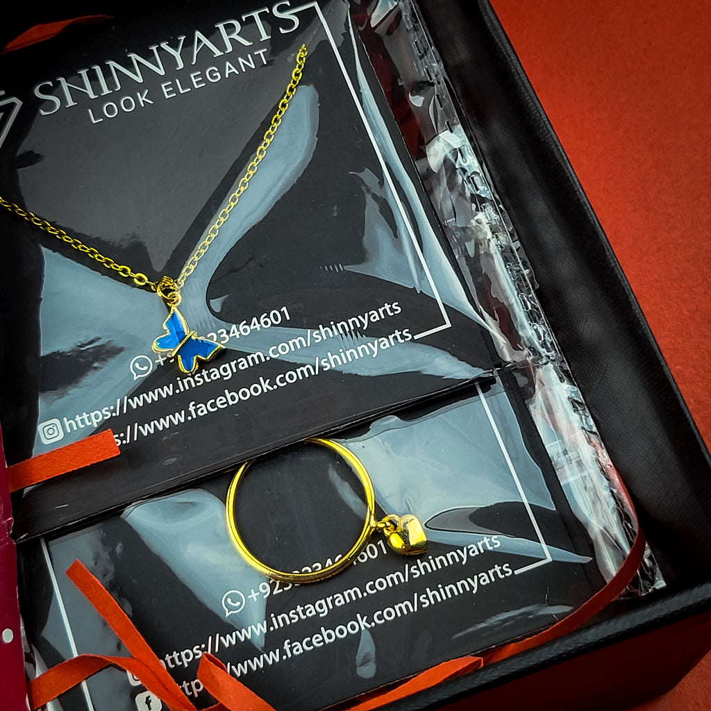 2 Elegant Non-Tarnish Jewelry (Heart Ring size Available 16mm to 21mm and Butterfly Necklace)